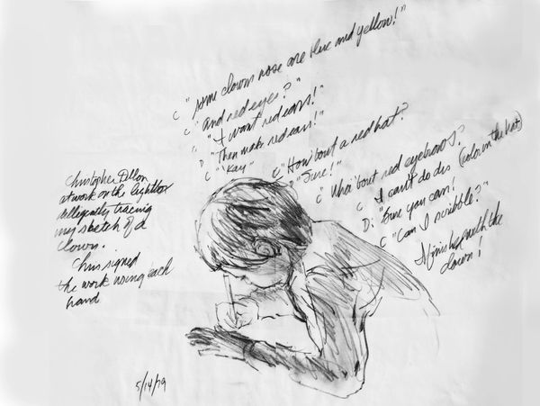 All three boys enjoyed playing in the studio. Christopher particularly. At the tender age of four, he discovered the appeal of the light box. With drawing skills that were already apparent, he would do tracing work, just like he watched me do on that wonderful device. My pencil sketch of four-year-old Chris making a drawing of a clown on the light box appears at left. As the boys grew older,