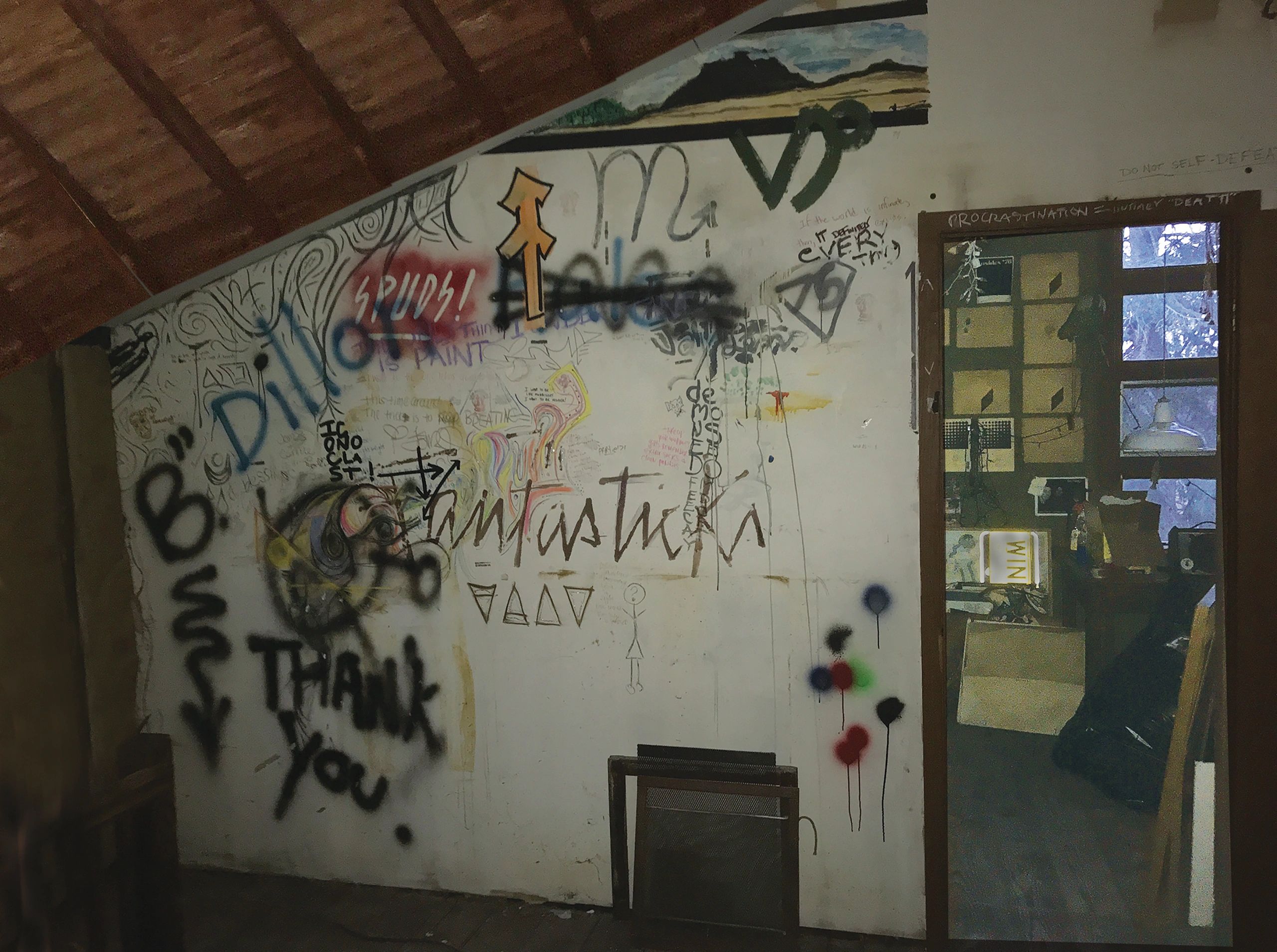 The attic space, much as it was when the music shook the timbers, and the wall accepted the efforts of an assorted group of young artists and poets.